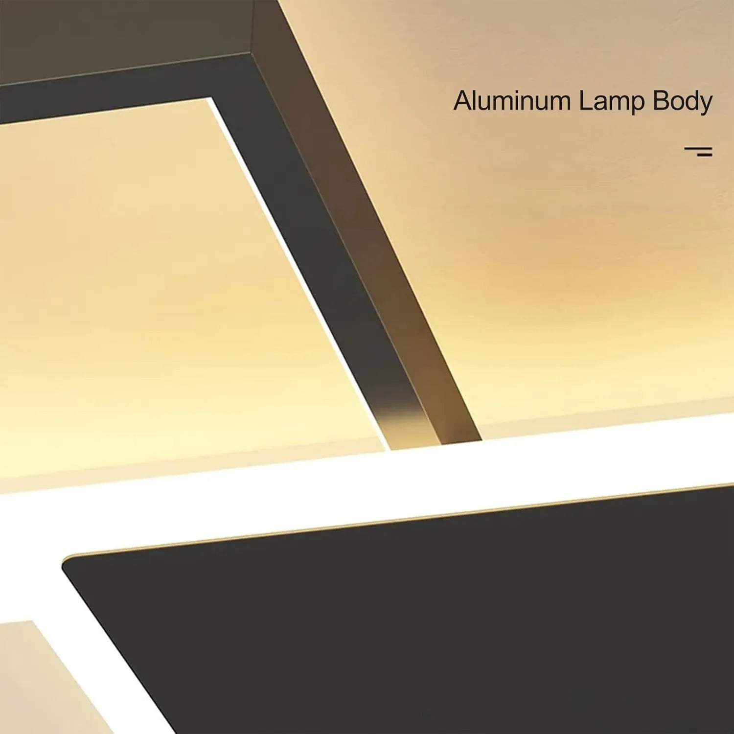 Axis è una plafoniera moderna dal design geometrico, composta da cornici luminose che creano un effetto visivo elegante e contemporaneo.