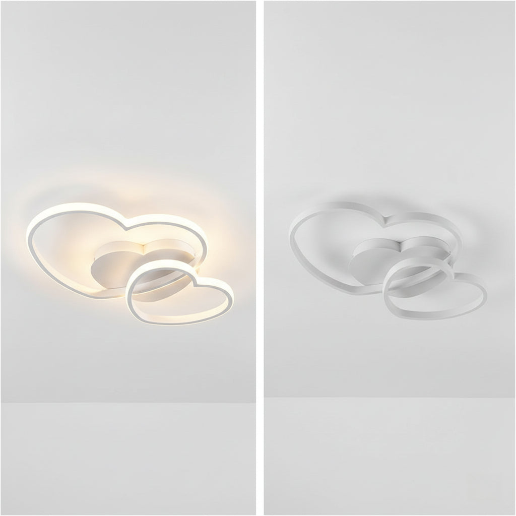 Dolcéa è una plafoniera decorativa dal design romantico, composta da due cuori luminosi che creano un’atmosfera calda e accogliente.